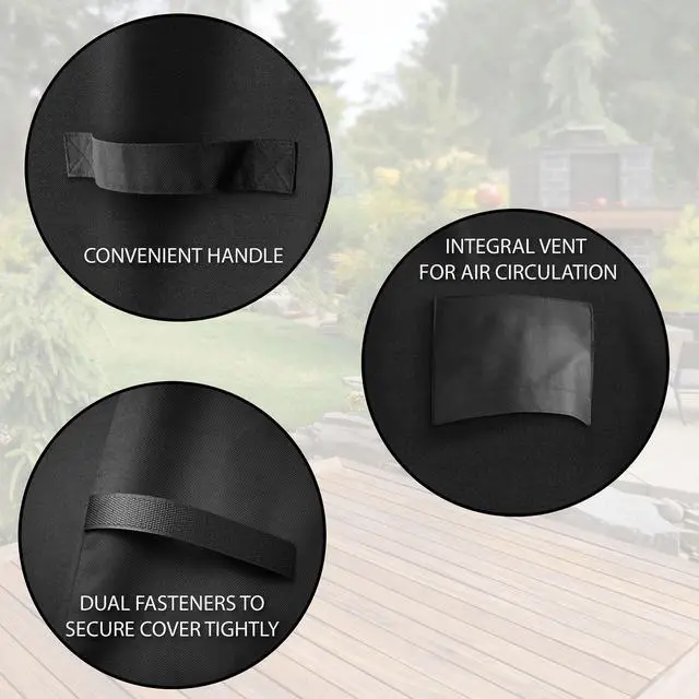Hook-and-loop fasteners secure the grill cover tightly around your grill for a custom fit. Wind and sandstorms dont stand a chance at getting this wind-resistant grill cover to fly off. An integral air vent provides additional protection from the elements keeping moisture out and allowing air to circulate freely while the grill is covered.