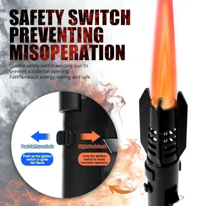 After ignition, turn the safety lock to the right at the same time, it will keep burning.