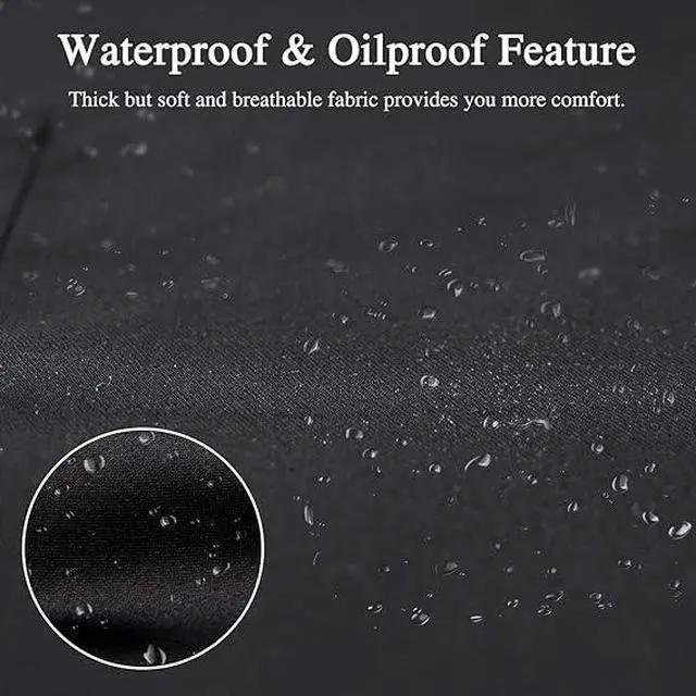 Made of three - layer composite waterproof and oil proof material to protect your clothes. Thick but soft and breathable fabric provides you more comfort.