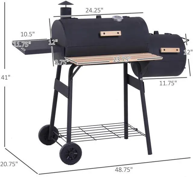 • 48" Steel Portable Backyard Charcoal BBQ Grill and Offset Smoker Combo with Wheels