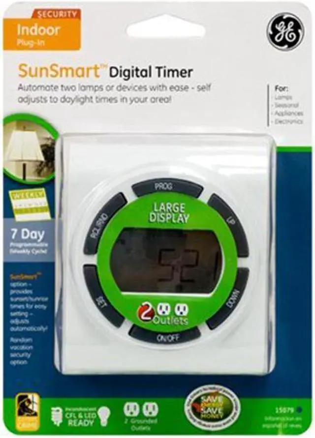GE 15079 7-Day Digital Plug-In Lamp/Appliance Timer (2 Outlets)