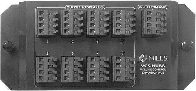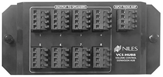 This central connection point organizes unsightly and often inconvenient installation wires required for multiple speaker pairs to be connected to an amplifier or receiver through a volume control.