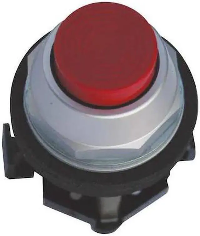 Flush push button has three square legend plates: Reset, Jog, and Open. Water tight and oil tight. Non-Illuminated Push Button, Plastic, Red