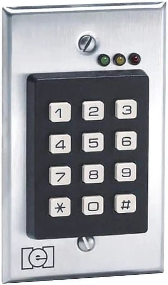 Access Keypad, Type Indoor Flush Mounted Keypad, Switch Action SPDT, Material Stainless Steel Single Gang Plate/Plastic Buttons, Finish Painted, Depth 1-1/3 In., Height 4-1/2 In., Width 2-3/4 In., Button Color White, Color White, Input Voltage 12 to 24VAC/DC Auto Adjusting, Output SPDT Relay, Amps AC 5A, Form C @ 24VDC, Operating Temp. 20 Degrees to 130 Degrees F, Event Audit Trail No, Max. User Codes 120, Keypad 12 Button, Cylinder No