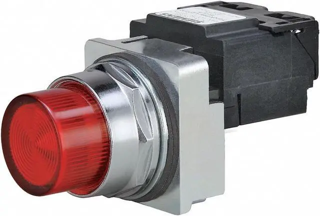 Constructed with a chrome plate, die-cast zinc body, and plastic lens. Screw clamp terminals. Features a full-voltage module. Round shape. Pilot Light Complete, LED, 24V, 30mm, RD