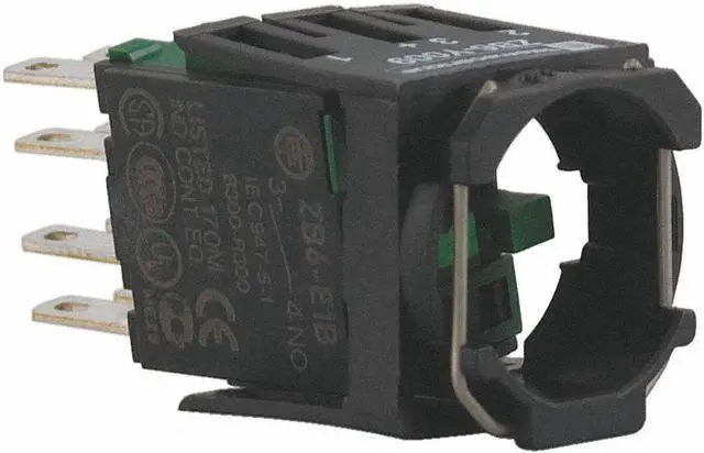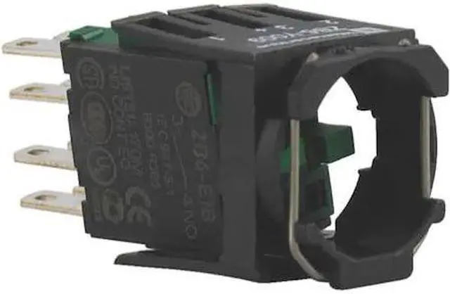 Contact Block, Contact Form 2NO, Contact Rating 6A @ 250V AC, For Use With Schneider 16mm Push Buttons, Action Momentary, 16 mm, Application Operator, NEMA Contact Rating Designation B300/R300, Color Black, Terminal Connection Slip On or Faston Connector or Quick Connector, Standards CSA C 22.2 No. 14, IEC 60947-1, IEC 60947-5-1, IEC 60947-5-5, JIS C4520, JIS C852, UL 508. This item has been restricted from sale in the following state (s): []