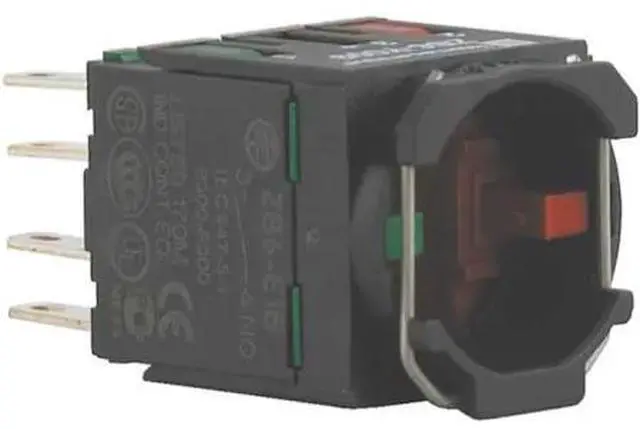 Contact Block, Contact Form 1NO/1NC, Contact Rating 6A @ 250V AC, For Use With Schneider 16mm Push Buttons, Action Momentary/Break Before Make, 16 mm, Application Operator, NEMA Contact Rating Designation B300/R300, Color Black, Terminal Connection Slip On or Faston Connector or Quick Connector, Standards CSA C 22.2 No. 14, IEC 60947-1, IEC 60947-5-1, IEC 60947-5-5, JIS C4520, JIS C852, UL 508. This item has been restricted from sale in the following state (s): []
