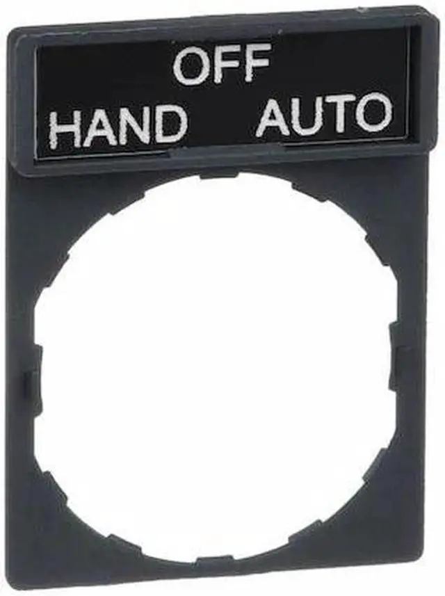 Legend Plate, Rectangular, Legend Hand-Off-Auto, For Use With Plastic and Chrome Operators, Legend/Background Color White/Black and Red, Material Plastic, Height 1.18 in, Width 1.57 in. This item has been restricted from sale in the following state (s): []