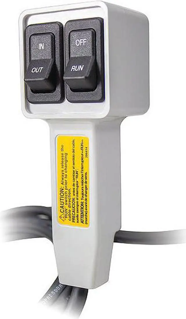 Winch Remote Control Switch Kit, Product Type Remote Control Switch Kit, Connection Type Wired, Controller Cord Length 10 ft, Number of Functions 4, Functions In/Out, Off/Run, Operating Range Not Applicable, Maximum Input Voltage 120 V AC, Overall Length 10 ft, Overall Width 2.25 in, Overall Height 6 in, Material Plastic, Color Black, White, Includes Not Applicable, Compatible Hoist Type Electric Wire Rope Hoists, Compatible Load Capacity 1, 200 lb, 4, 000 lb. This item has been restricted from sale in the following state (s): []