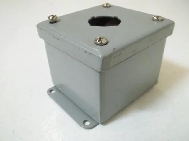 Push Button Enclosure, Number of Columns 1, Number of Holes 2, NEMA Rating 12, 13, 4, Conduit Size No Conduit Entrance Holes Provided, Dimensions 5.75 in H x 3.25 in W x 2.81 in D, Hole Size 30 mm, Material Carbon Steel, Height 5.75 in, Width 3.25 in, Depth 2.81 in, Color Gray, Includes Captive Cover Screws, Closed Cell Oil Resistant Gasket, Type Oil Tight, Mounting Style External Plates, Standards cULus, UL Listed. This item has been restricted from sale in the following state (s): []