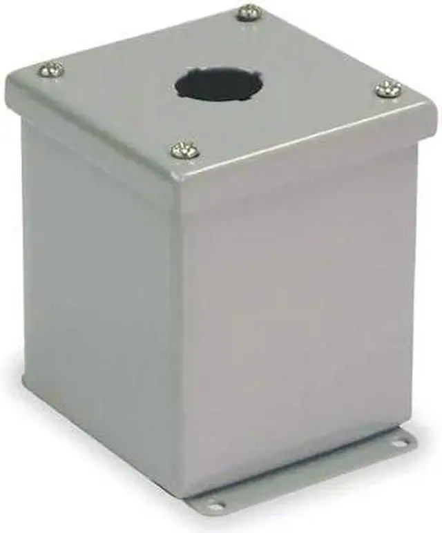 Push Button Enclosure, Number of Columns 1, Number of Holes 1, NEMA Rating 12, 13, Conduit Size No Conduit Entrance Holes Provided, Dimensions 4.00 in H x 4.00 in W x 4.81 in D, Hole Size 30 mm, Material Carbon Steel, Height 4 in, Width 4 in, Depth 4.81 in, Color Gray, Includes Captive Cover Screws, Closed Cell Oil Resistant Gasket, Type Extra Deep, Mounting Style External Plates, Standards cULus, UL Listed. This item has been restricted from sale in the following state (s): []