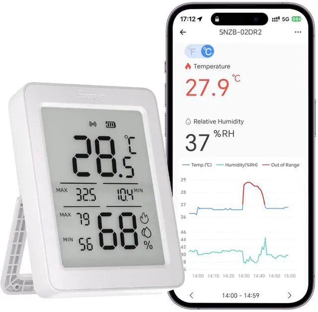 [App Remote Real-time monitoring & notification] You can monitor the temperature and humidity in real time on the App remotely, with up to 120m/400ft coverage. Receive instant alerts from the App when data exceeds the set comfort level.