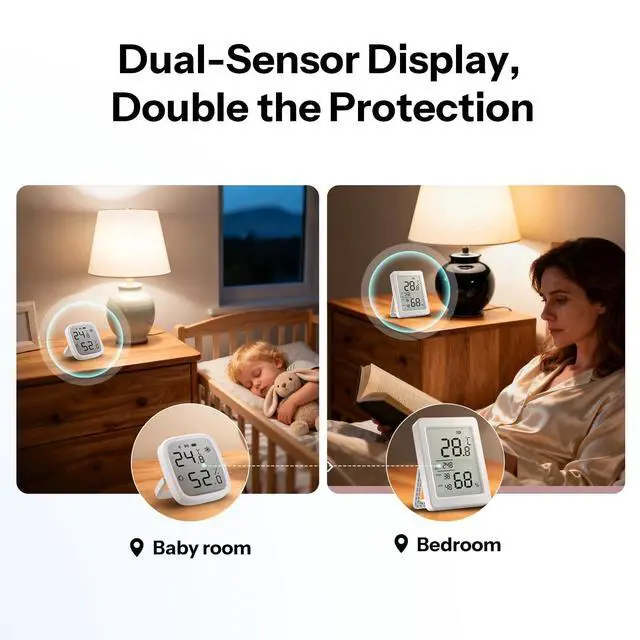 [Remote Data Display for Multi-Room Monitoring] The device can display real-time data from another temp. & humi. sensor after setting it as remote data source. Help expand your monitoring area, keep track of the nursery, bathroom, wine cellar, or greenhouse conditions without walking over.