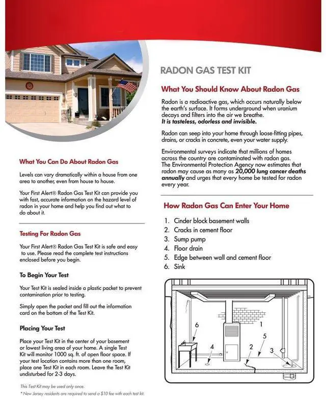 The First Alert RD1 Radon Gas Test Kit includes everything you need to check your home, business, or school for radon. Radon is a naturally occurring gas that can be found in basements, drains, crawl spaces, and other areas below ground. The EPA recommends testing for radon below the third floor of buildings. The charcoal-based radon test kit is listed under the EPA Radon Gas Measurement Proficiency Program.