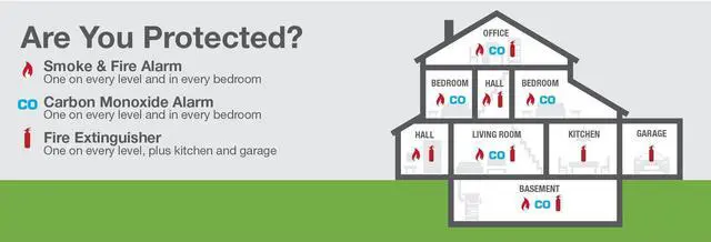 Carbon monoxide alarms can be placed anywhere, not just the ceiling or high on a wall. They should be replaced every 5 to 7 years.