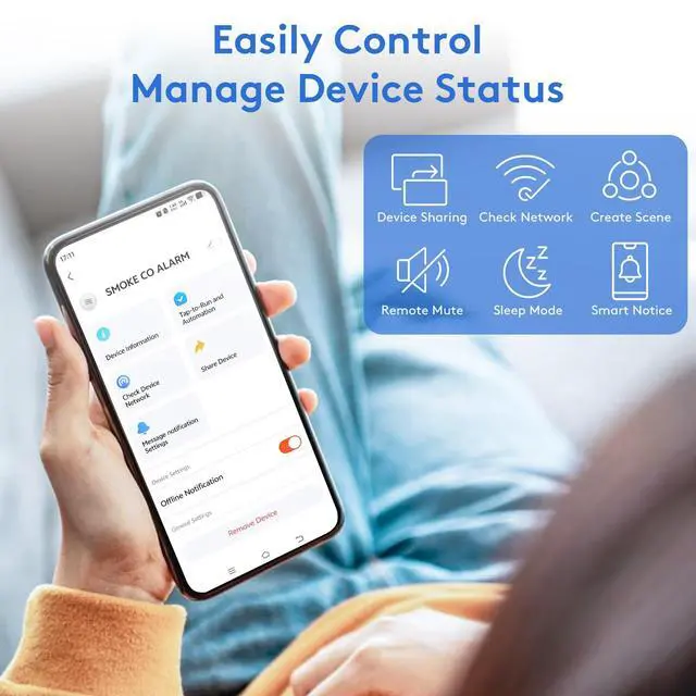This WiFi smoke and carbon monoxide detector features highly stable photoelectric and electrochemical sensors for precise detection of both hazards. Connect the device to your phone via WiFi for real-time smart status syncing, making guarding your home more convenient.