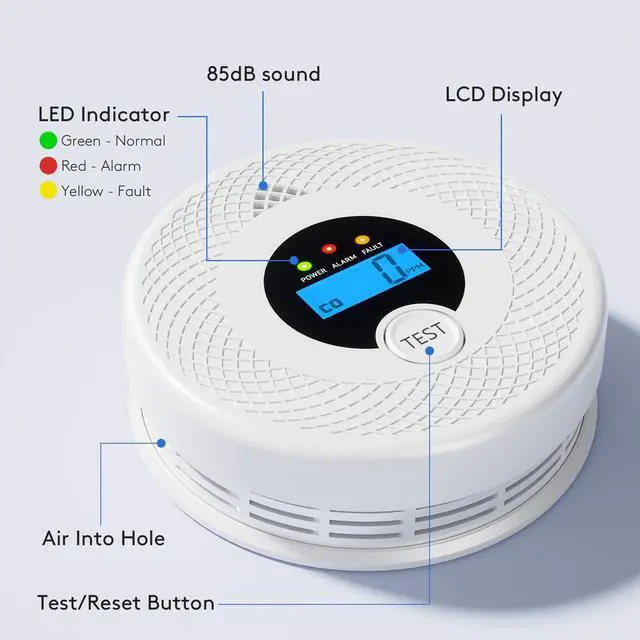 Precise CO Sensitivity: 70ppm (60-180 mins), 150ppm (10-50 mins), 400ppm (4-15 mins), 700ppm (2-6 mins). Balances responsiveness and false-alarm prevention.