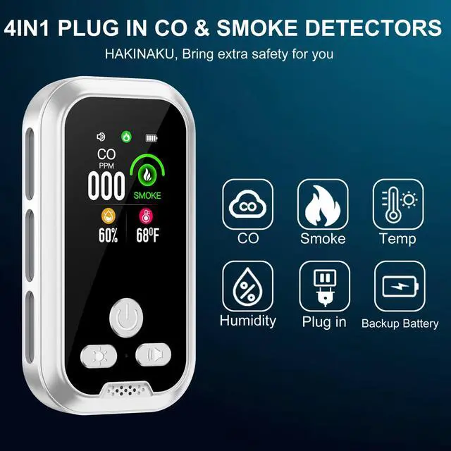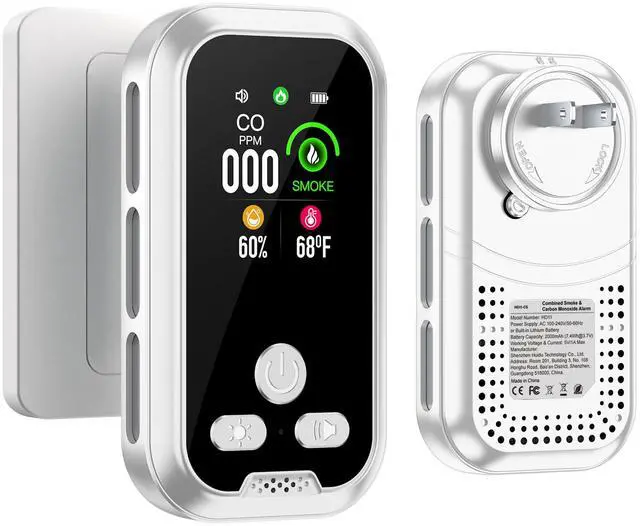 ![Alt view image 5 of 7 - 4in1 Plug in Smoke & Carbon Monoxide Detector Combination Builti-in 2000mAh Backup Battery HD Screen [Smoke CO Temp Humidity Sensor] for Home Hotel Travel (1 Pack, White)](https://c1.neweggimages.com/productimage/nb640/C5DWD2603160QPCHR4B.jpg)