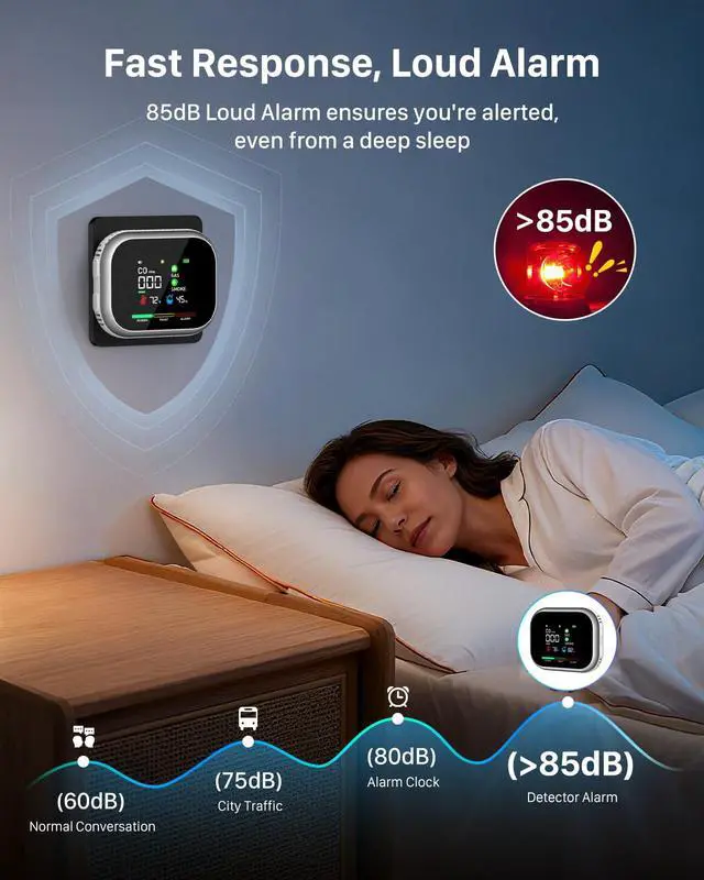 Advanced Multi-Sensor Detection Technology: This smart carbon monoxide detector is equipped with high-precision electrochemical and photoelectric sensors to monitor CO, combustible gases, and smoke in real time. This professional-grade combination helps ensure a rapid and precise response to multiple threats. Real-time audible and visual alerts keep you informed the moment a risk is detected.