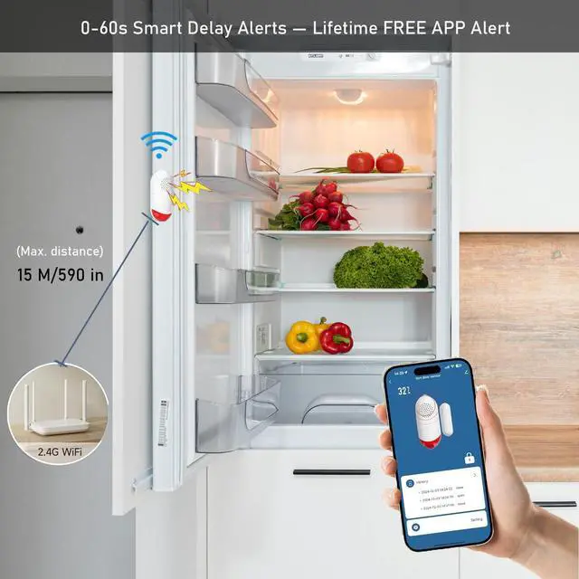 Smart WiFi Freezer Refrigerator Door Alarm with Free Real-Time APP Alerts