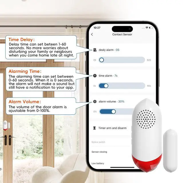 Smart WiFi Freezer Refrigerator Door Alarm with APP Alerts, No Subscription Fee, 0-60s Delay, Scheduled Arm/Disarm, 0-120dB Adjustable Siren with Light for Fridge/Home/Commercial