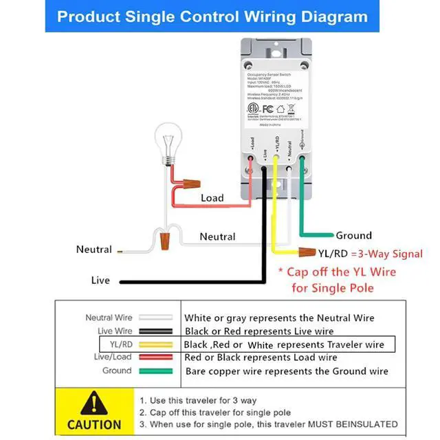 - Switch Type: Single-Pole PIR Sensor Light Switch