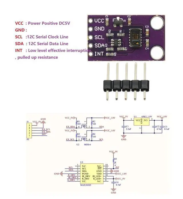 The module has internal pull-up resistors for the I2C data and clock lines, so the user does not need to pull up the resistors repeatedly.