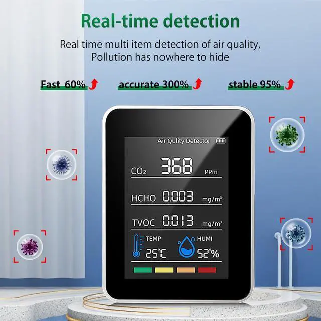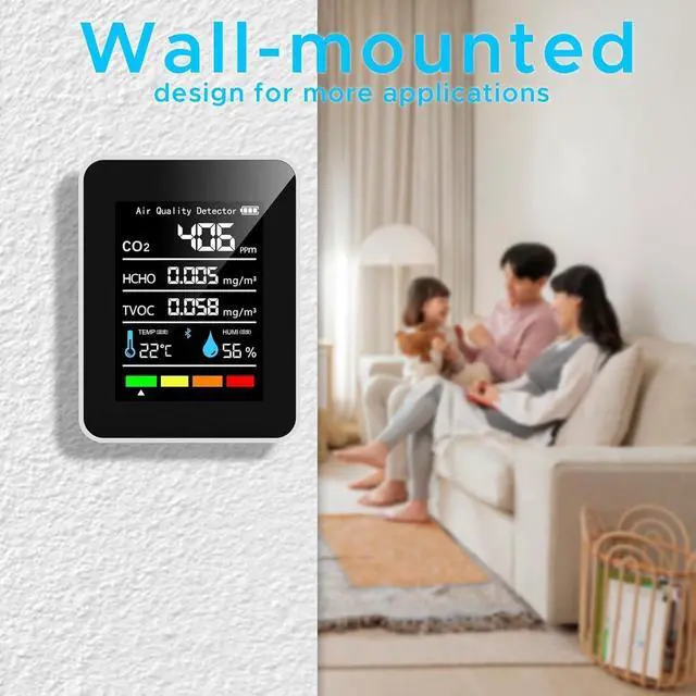High Precision and ReliabilityHome Air Quality Tester uses high-performance chips and advanced sensor technology to detect carbon dioxide, formaldehyde and volatile organic compounds. Compared to ordinary sensors, it is more sensitive, more accurate and more stable.
