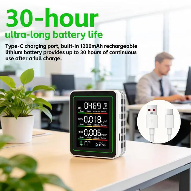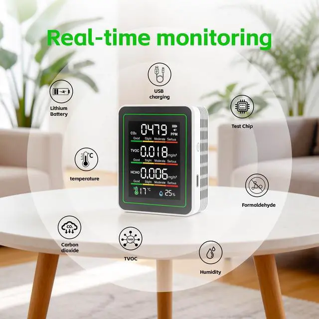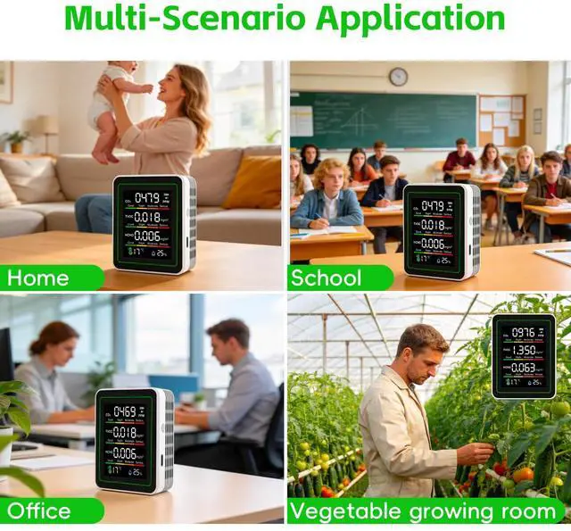 Perfect for home, bedroom, office, kitchen, school, hotel, car, grow room and travel. Ideal for monitoring air quality in living spaces, ensuring a safer and healthier environment.