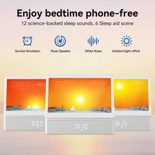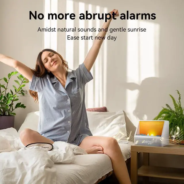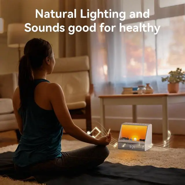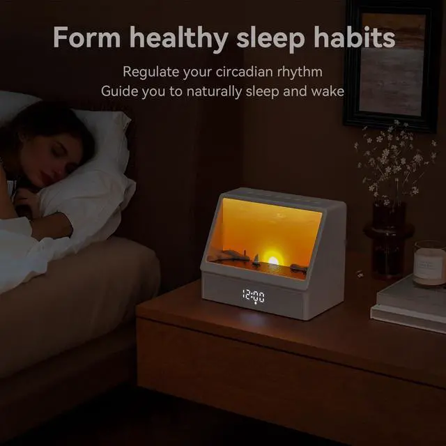 Rise with the Sun, Naturally - Tired of jarring alarms? Our sunrise lamp offers a better way to wake. It simulates a realistic 15-minute sunrise that syncs with your body's natural rhythm for a refreshed feeling. The light brightens gradually to ease you into the day, often before a sound ever plays. If you struggle with morning grogginess or just want a happier start, this is for you.