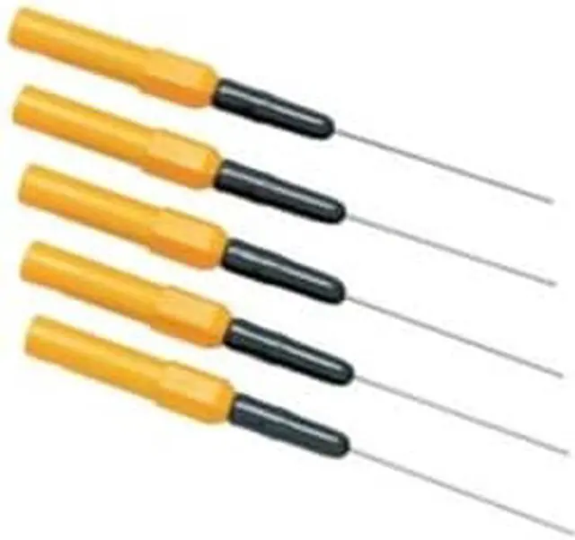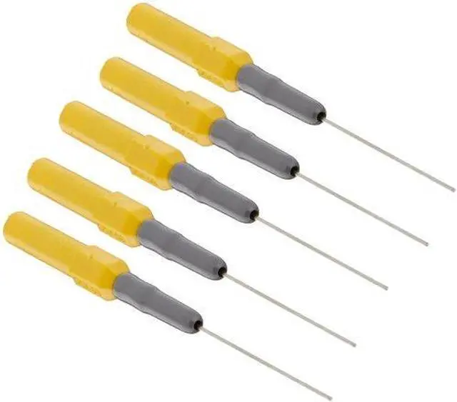 Flexible and formable 1- inch pin provides an easy connection past weather pack seals to connector conductors. Tested to over 60 VDC, these pins are a must-have for fuel injectors, TPS and MAP sensors, as well as for any underhood or under vehicle connector with weather pack seals. The bright yellow body stands out in an engine compartment to ensure they are not left behind. Easily connects to test leads that have removable ends such as the TL224.