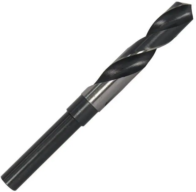 • 15/32" HSS Reduced Shank Drill Bit x 3/8" Shank, Drill America Surface Treated Flutes, HSS, Reduced Shank, Silver and Deming Drill Bit, Size: 15/32, Dec. Equivalent .4688, Flute Length 4-5/16, Overall Length 5-3/4,