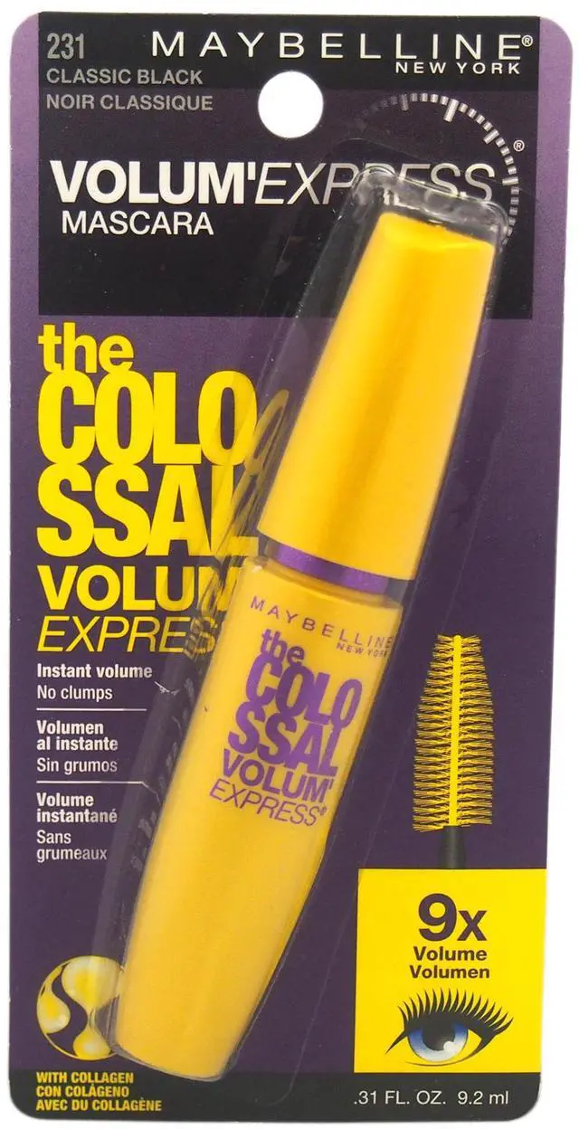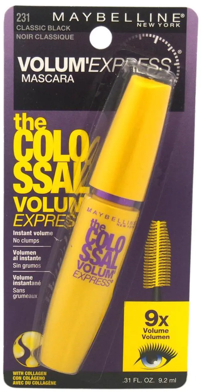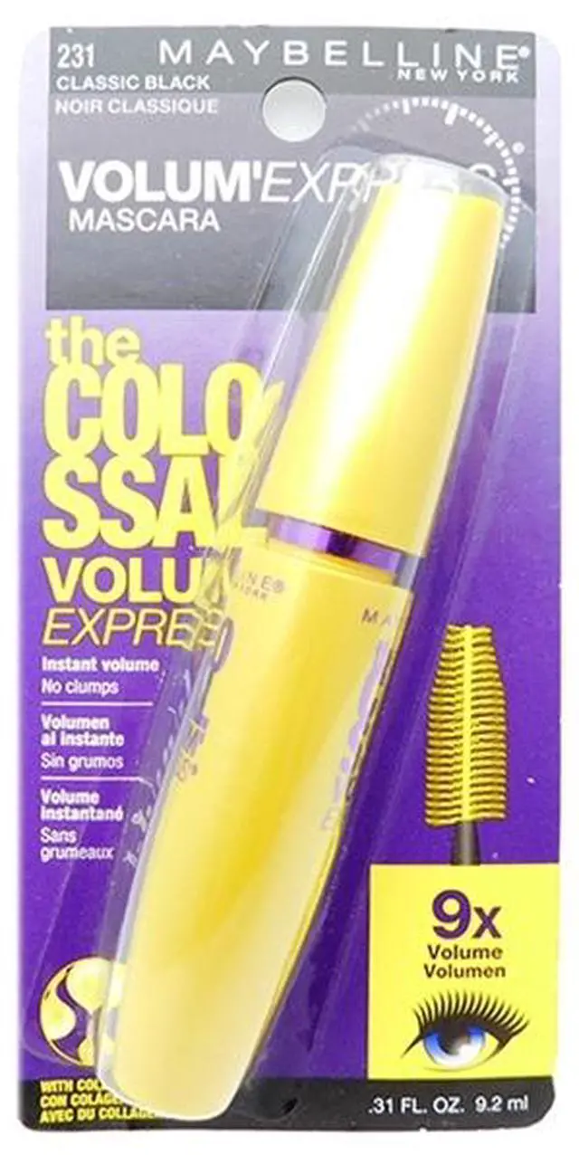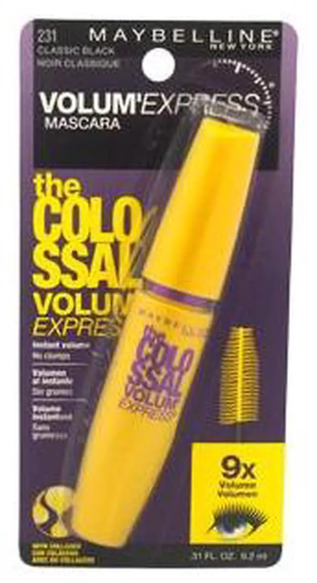 Maybelline The Colossal Volum Express Mascara - # 231 Classic Black - 0.31 oz. Brand New.. Mega brush increases your lash volume by 9x with one stroke. Volum' express colossal mascara by maybelline features a clump-free formula that contains collagen to plump up your lashes effortlessly... The Colossal Volum Express Mascara - # 231 Classic Black - 0.31 oz