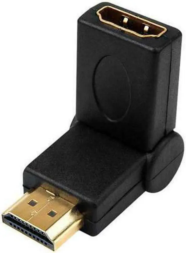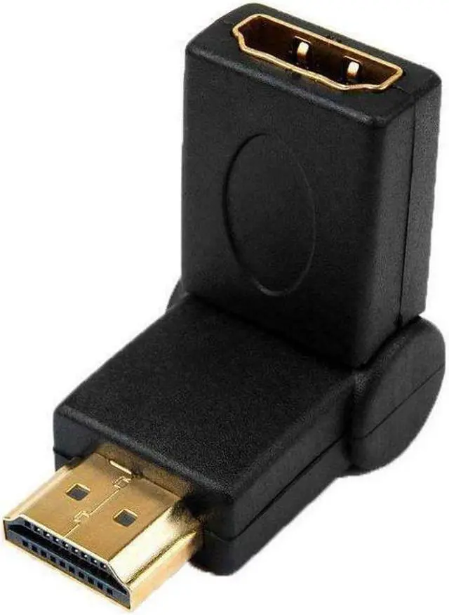 Avoid bending your HDMI cables which can cause strain and potential signal loss. 4XEM's Male To Female 90 Degree Swivel HDMI A Adapter (4XHDMIMFSWIVEL) offers up to 90 degrees of smooth swivelling rotation when installing your HDMI cables. Gold plated connectors ensure minimal loss of signal and offer full support for pristine 1080p HD video.