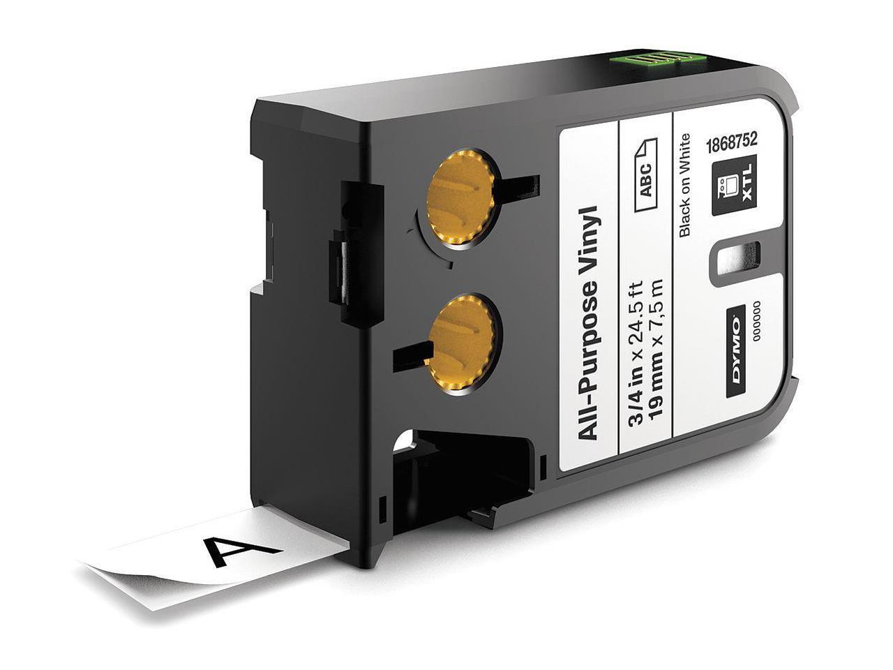 Dymo 1868752 Rhino XTL White Vinyl Tape - 19mm, Black Text