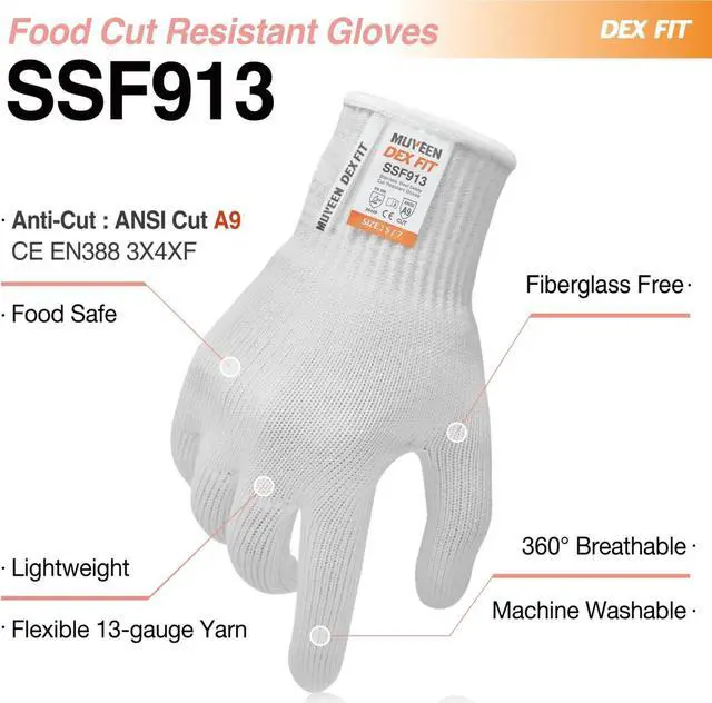 ![Alt view image 6 of 7 - Muveen Steel Fiber Cut Resistant Gloves, Food Grade [DEX FIT SSF913]: large / 1 pair (White)](https://c1.neweggimages.com/productimage/nb640/ACWFD2412141DJ4EBCF.jpg)