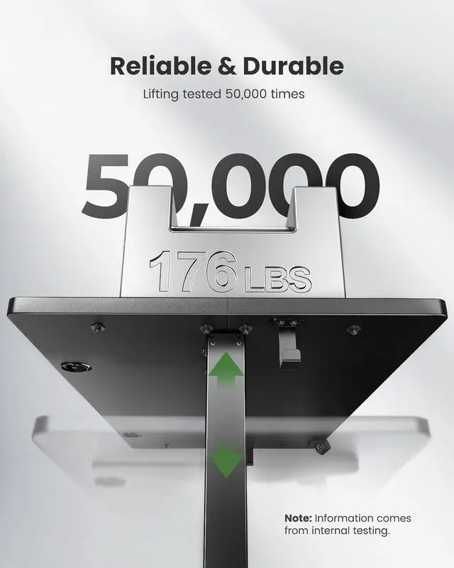 &: This standing desk supports & lifts multiple monitors and other office equipment (176 lbs Max load). To test long-term reliability, the adjustable desk has been 50, 000-lift tested and keeps on going.
