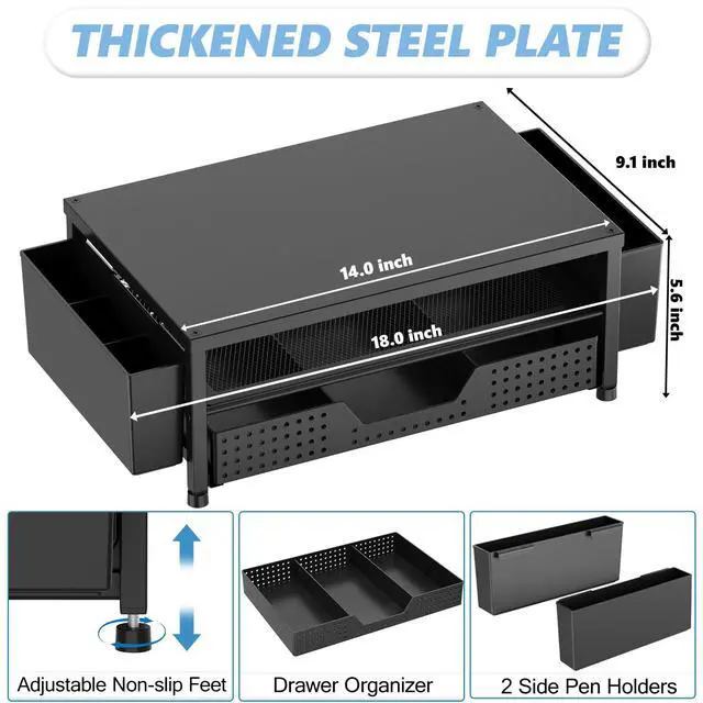 OPNICE monitor stand with drawer and 2 pen holders helps keep your desk organized and creates a calm workspace where you can think more clearly, focus and work more efficiently.