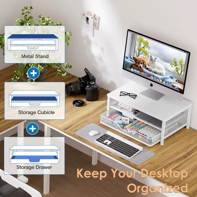 Crafted entirely from premium all-metal construction, including the frame, drawer, the OPNICE monitor stand delivers durability and elegance. Unlike plastic, its metal components require more complex and costly manufacturing, ensuring a higher-end, long-lasting desk organizer you can rely on.