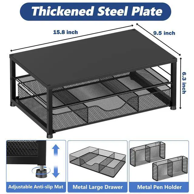 For those who value a neat and organized workspace, this 2-tier monitor stand with 2 hanging pen holders and 1 drawer provides ample storage for your office supplies and desk accessories, helping to keep them neatly categorized and easily accessible.