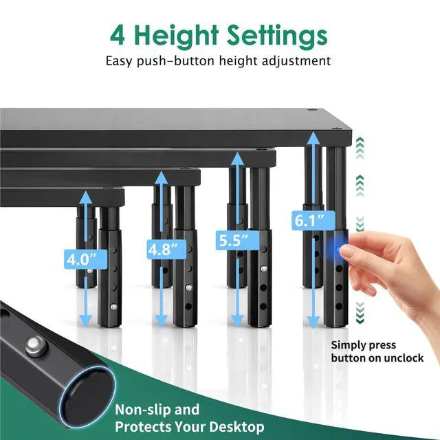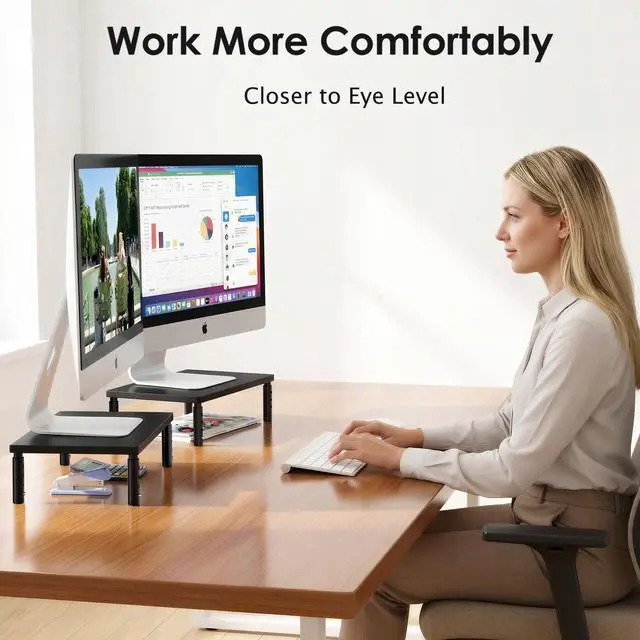 Designed with four adjustable height levels, this monitor stand allows you to raise your screen to a position that feels natural and comfortable.By aligning your monitor closer to eye level, it helps reduce strain on your neck and shoulders during long hours of work or study.
