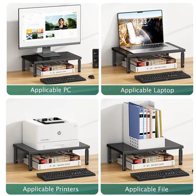 Ideal for monitors, laptops, printers, and everyday office essentials, this adjustable stand helps elevate your screen while freeing up valuable desk space below. Whether for work, study, or creative tasks, it supports a cleaner, calmer, and more efficient desktop.