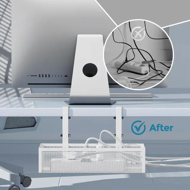 This under desk cable management tray features a no-drill installation that securely fits a variety of desktop thicknesses without causing damage.The cable tray is perfect for organizing power strips, cables, and adapters, the wire management keeps your workspace neat and tidy. The dual-direction clamp and open-side design allow flexible setup and easy access to plugs. Stay organized and boost productivity with a cleaner, more efficient desktop.