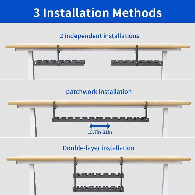MULTI-MODEL 31INCH EXTENDABLE CABLE TRAY: Our Under Desk Cable Management Can Expanded To a Maximum Of 31 Inches, More Storage Space Than Others, And Three 9.45 * 4.33-Inch Power Strips Can Be Placed At The Same Time. It Can Make Many Messy Cables Under Your Desk Clean, And Free Up The Space Under Your Desk
