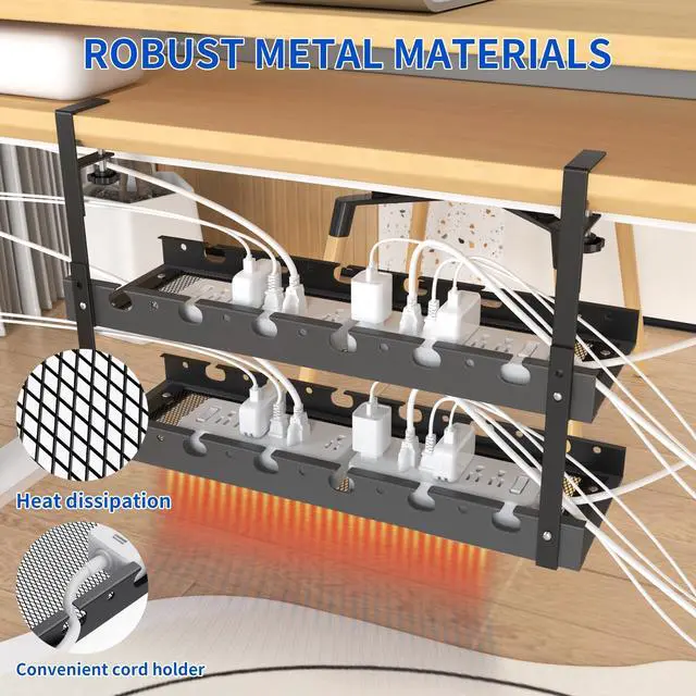 DURABLE AND STURDY: The Under Desk Cable Management Is Made Of High-Quality Carbon Steel, Which Is More Durable. The Hollow Design Can Effectively Reduce Dust Accumulation, Better Fix The Cable While Maintaining Good Air Permeability, High Heat Dissipation Efficiency, And Avoid Overheating Of Cable Or Power Strip