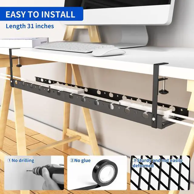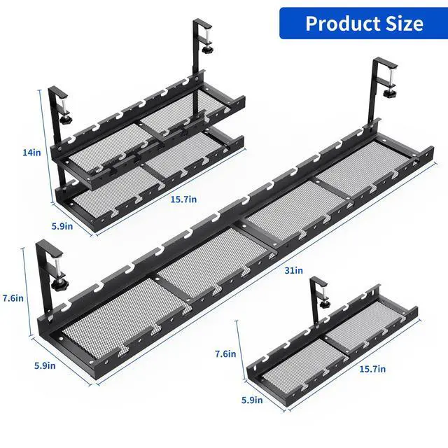 NO DRILLING & EASY TO INSTALL: Instead Of Drill Your Desk And Damage The Desk With Screws, Our Under Desk Cable Management Tray Can Be Hanged Directly To Desk With Clamp, And Easily Change Its Length As Needed, Easy To Install Without Instructions, Make Your Management Plan Easy.