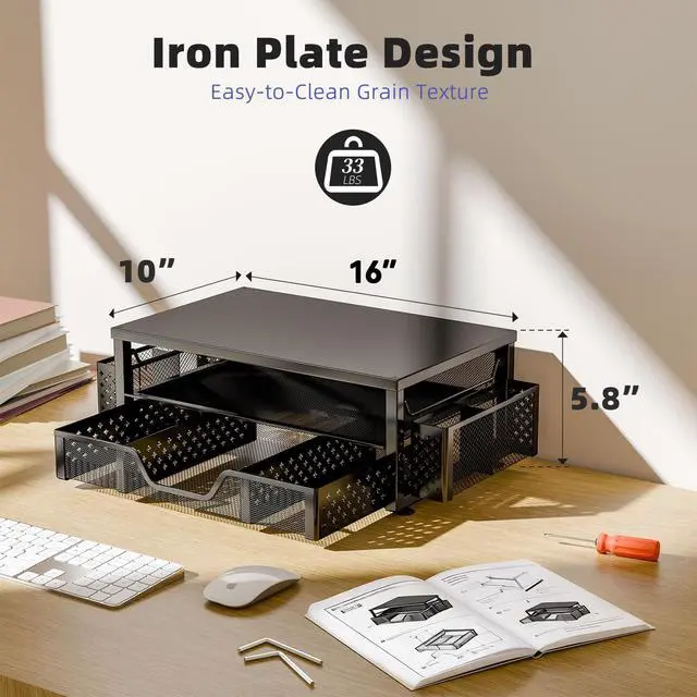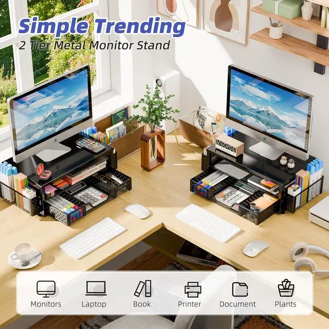 Durable ConstructionCrafted from premium metal, its sturdy frame effortlessly supports monitors and computer accessories. Ensures long-term stability without wobbling, perfect for offices, dorms, or home environments.