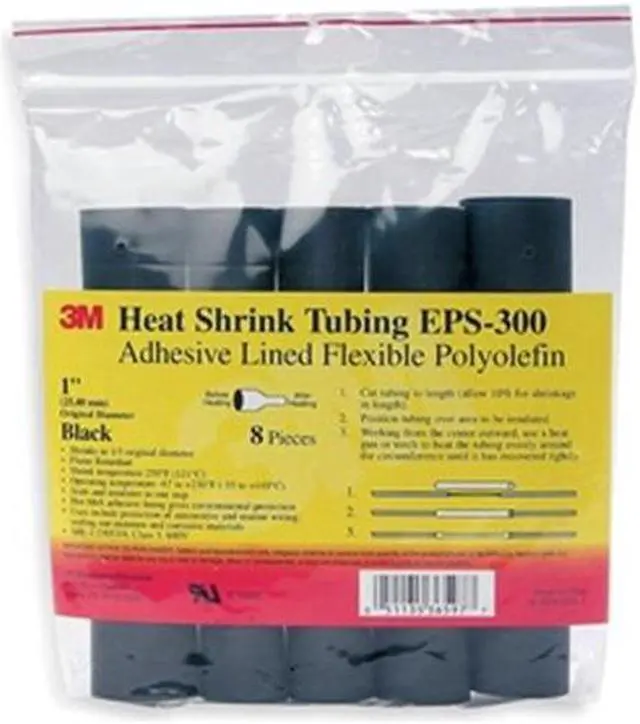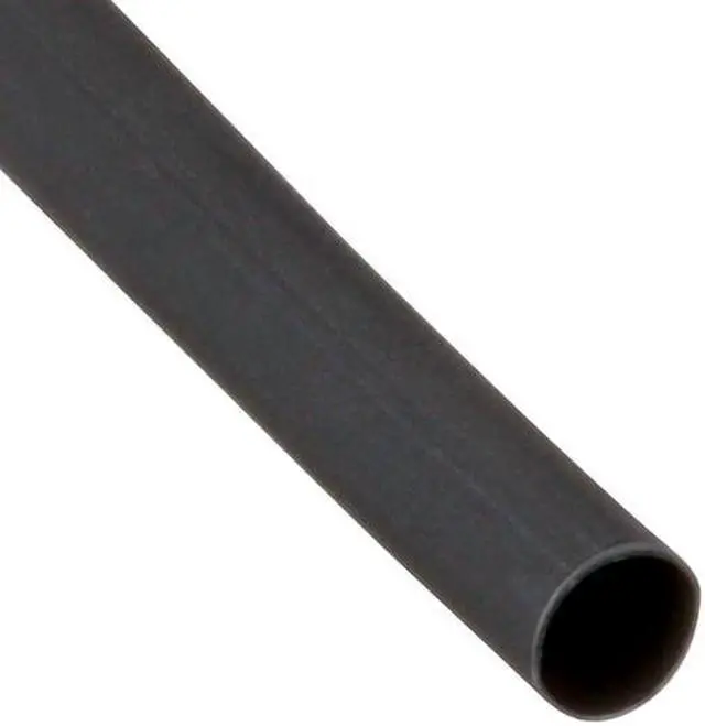 Heat Shrink Tubing, Thin Wall, Material Polyolefin with Adhesive, Flexible, Flame Retardant Yes, Adhesive Lined Yes, Shrink Ratio 3:1, Use With Wire Size 16 AWG to 12 AWG, I. D. Before Shrinking 0.25 in, I. D. After Shrinking 0.08 in, Wall Thickness After Shrinking 0.02 in, Length 6 in, Shrink Tubing Properties Abrasion-Resistant, Acid and Alkali-Resistant, Color Black, Temp. Range -67 Degrees to 230 Degrees F, Package Style Individual Pieces, Min. Shrink Temp. 250 Degrees F.