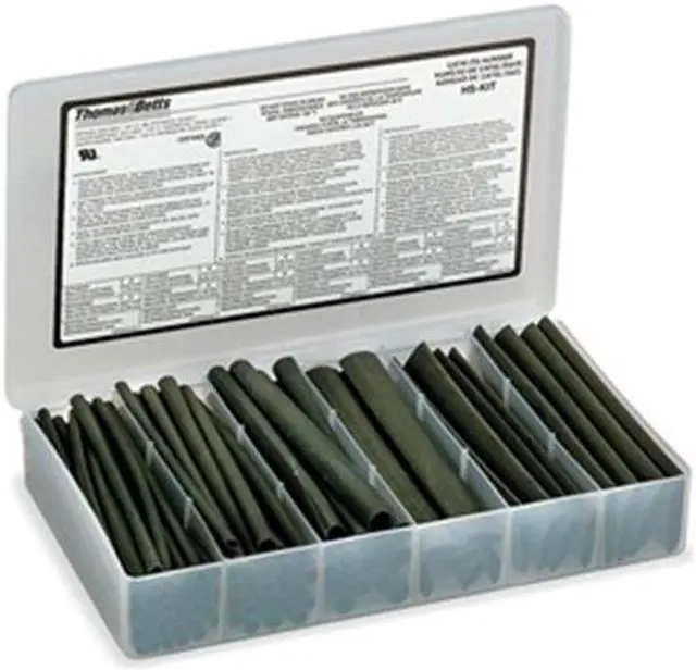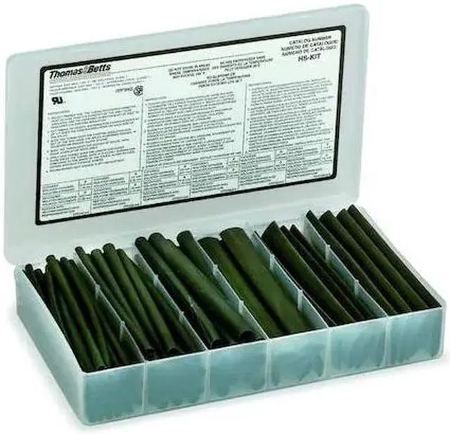Heat Shrink Tubing Kit, Thin Wall, Material Cross-Linked Polyolefin, Flexible, Flame Retardant No, Adhesive Lined No, Temp. Range -67 Degrees F to 275 Degrees F, Shrink Ratio 2:1, Number of Pieces 74, Includes (20) 1/4 in, (32) 3/16 in, (4) 1 in, (4) 3/4 in, (6) 1/2 in, (8) 3/8 in, Plastic Storage Case, Color Black, Length 6 in, Package Style Sticks, Kit Contents Multiple Sizes, Use With Wire Size 0.18 in to 1.00 in, I. D.