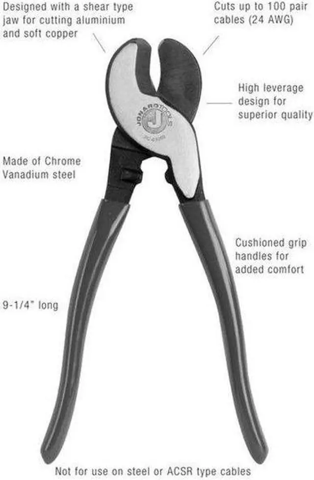 California Proposition 65: This product contains a chemical known to the State of California to cause birth defects or other reproductive harm. Cable Cutter, Cutter Type General Purpose Cable Cutter, Cutting Action Shear, Features Ergonomically Designed Handle with Dipped Plastic Grip for Greater Comfort and Torque, High Leverage Design for Superior Cutting Ability, Shear-Type Jaw for Easily Cutting Through Aluminum, For Maximum Diameter ACSR Conductor Not Rated, For Maximum Wire Thickness 24 AWG, For Wire/Cable Type Electrical/Data Cable, For Maximum Diameter Copper Electrical Cable 2 AWG. This item has been restricted from sale in the following state (s): []